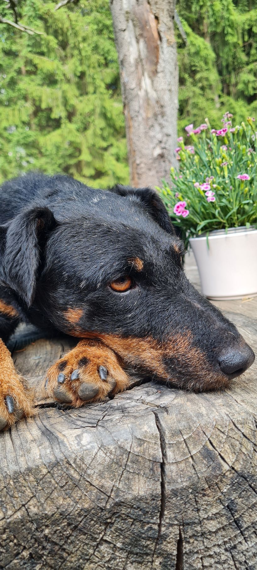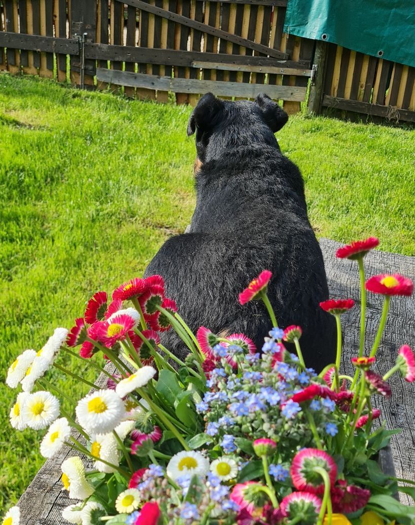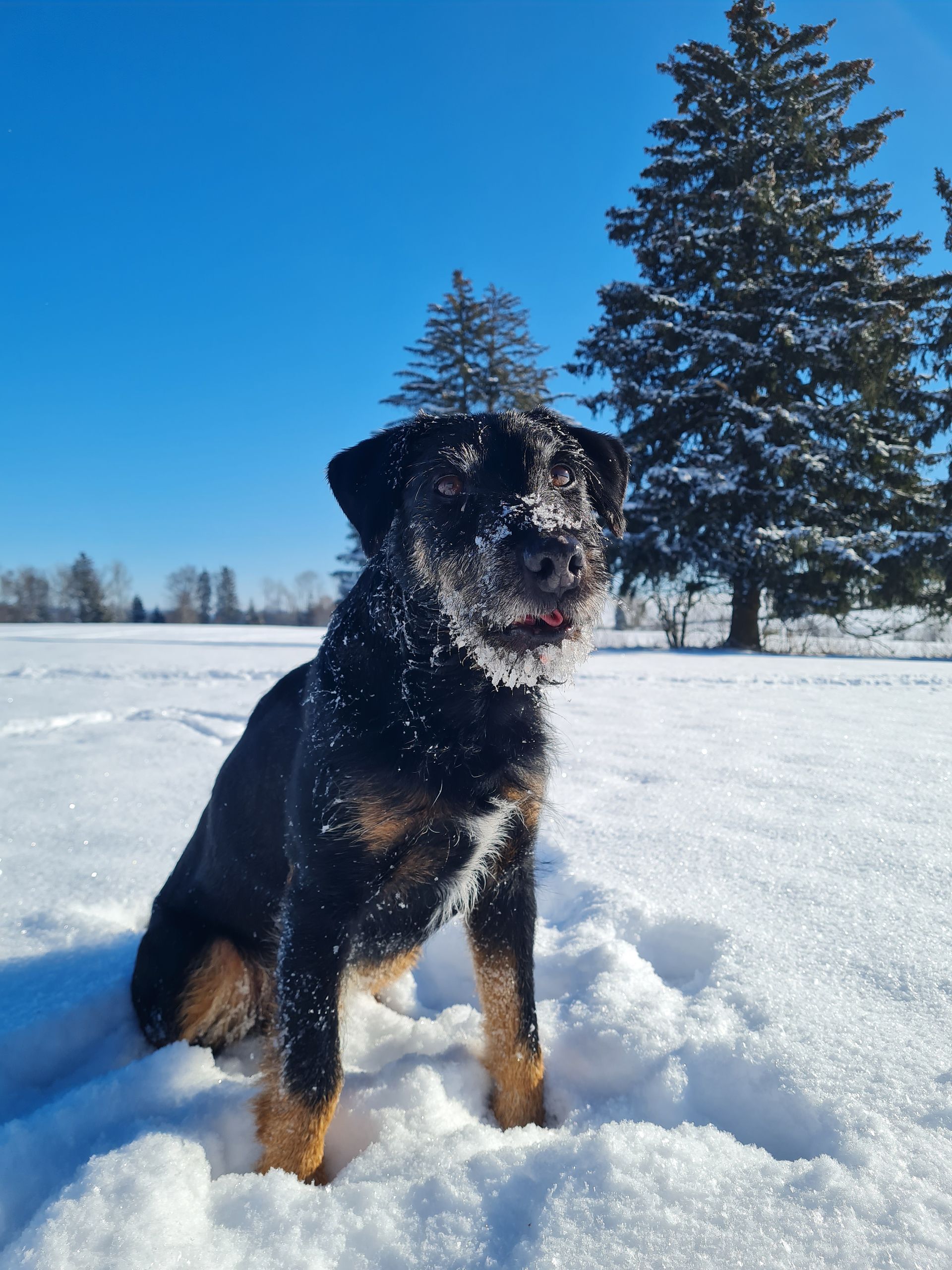 Hexe ist eine sehr führerbezogene, intelligente, selbstbewusste Hündin.