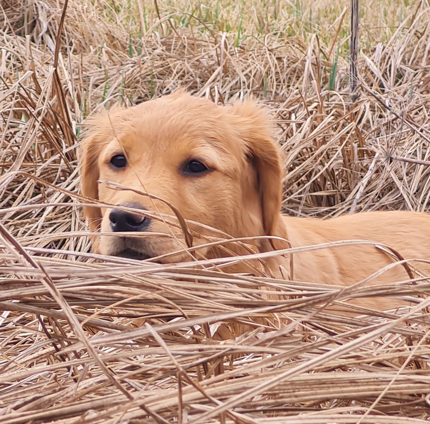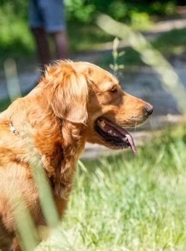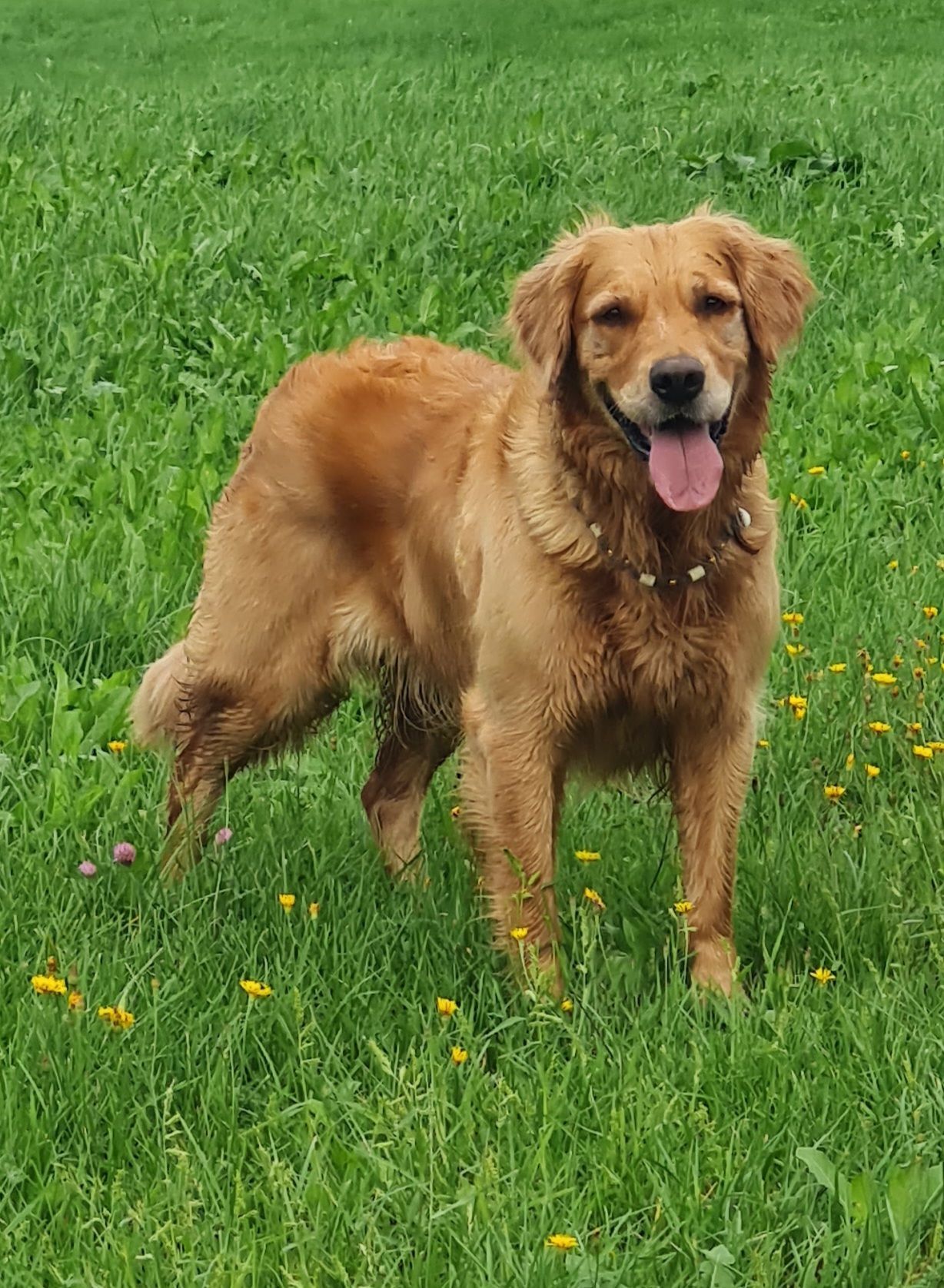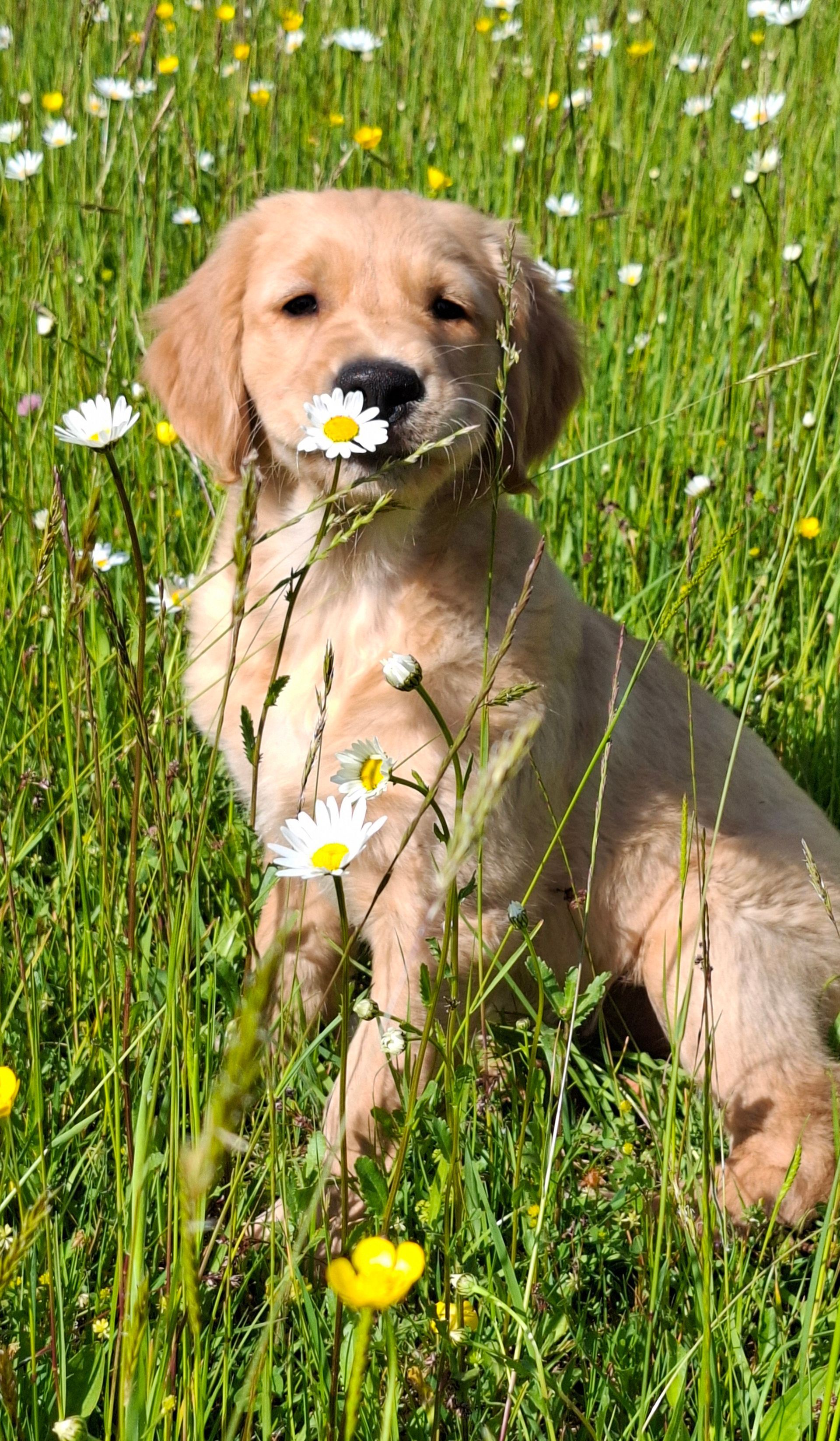 Die 2 1/4 Jahre alte Golden Hündin zeigt sich heute sicher und offen gegenüber Fremdpersonen, die Arbeit mit Beute zeigt sie freudig und ausdauernd, den Parcours durchläuft sie selbständig und unbelastet.