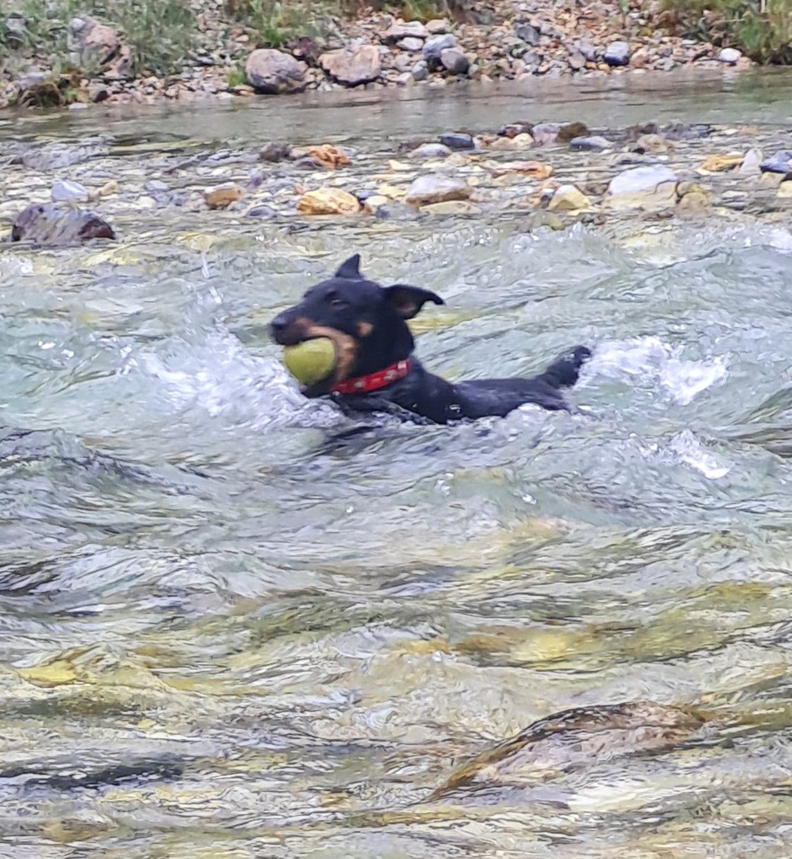 Ihre Wasserfreude ist enorm, sie nimmt jegliches Wasser sofort an.